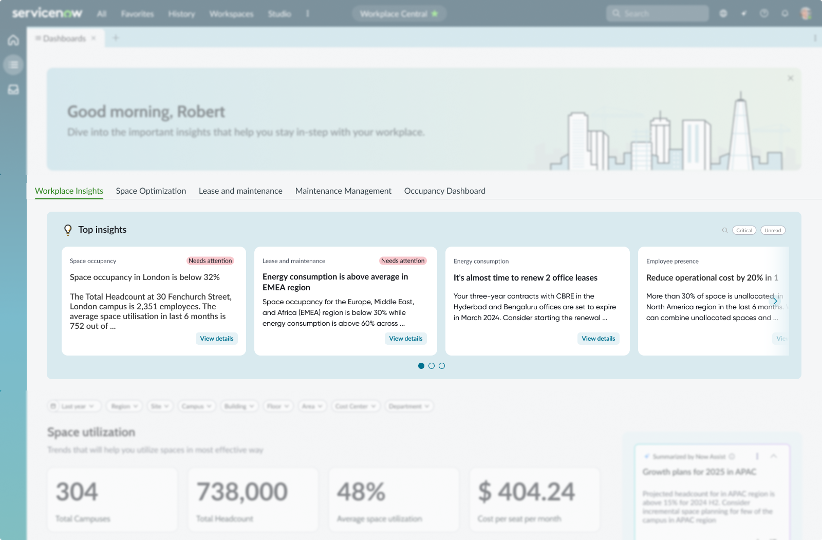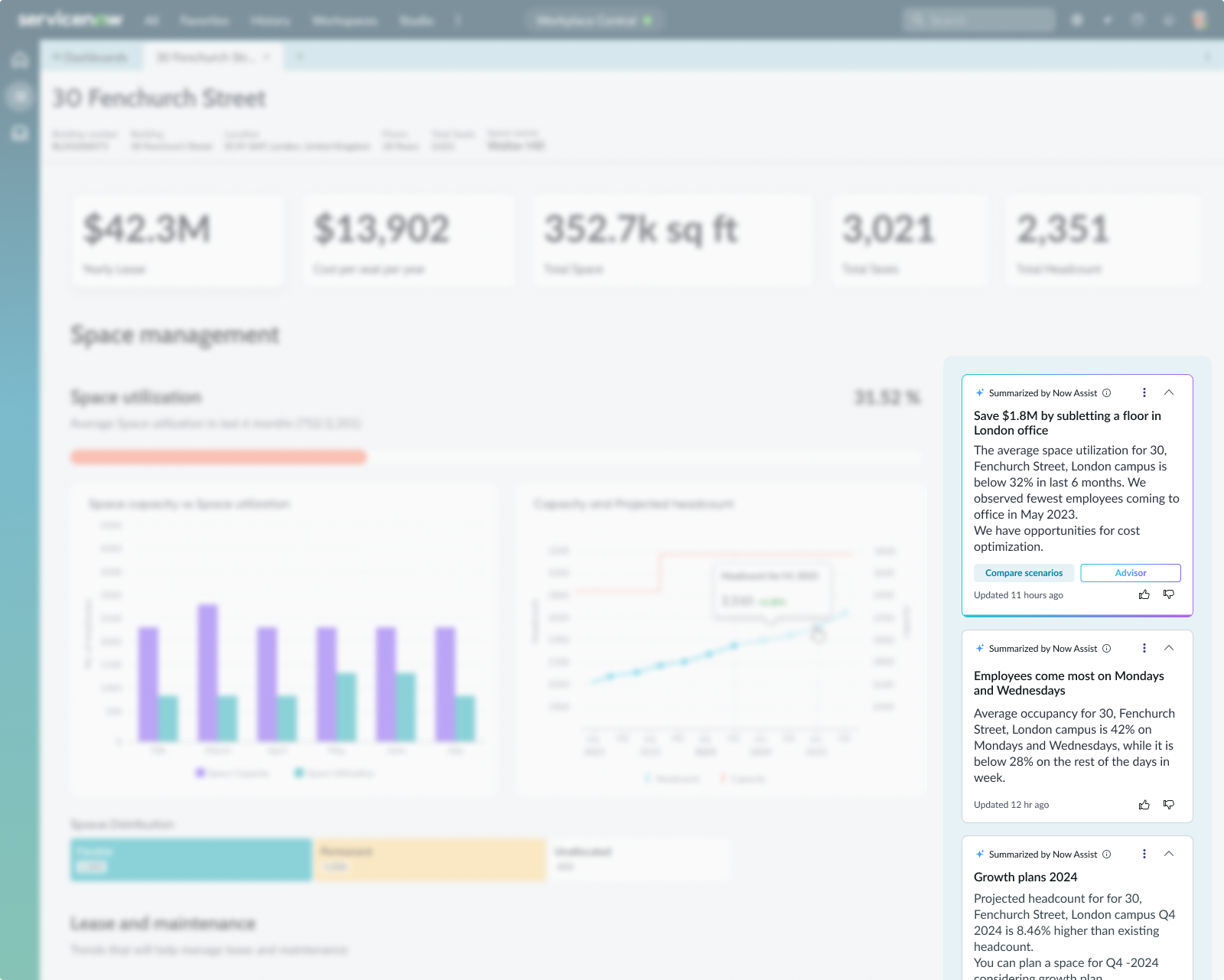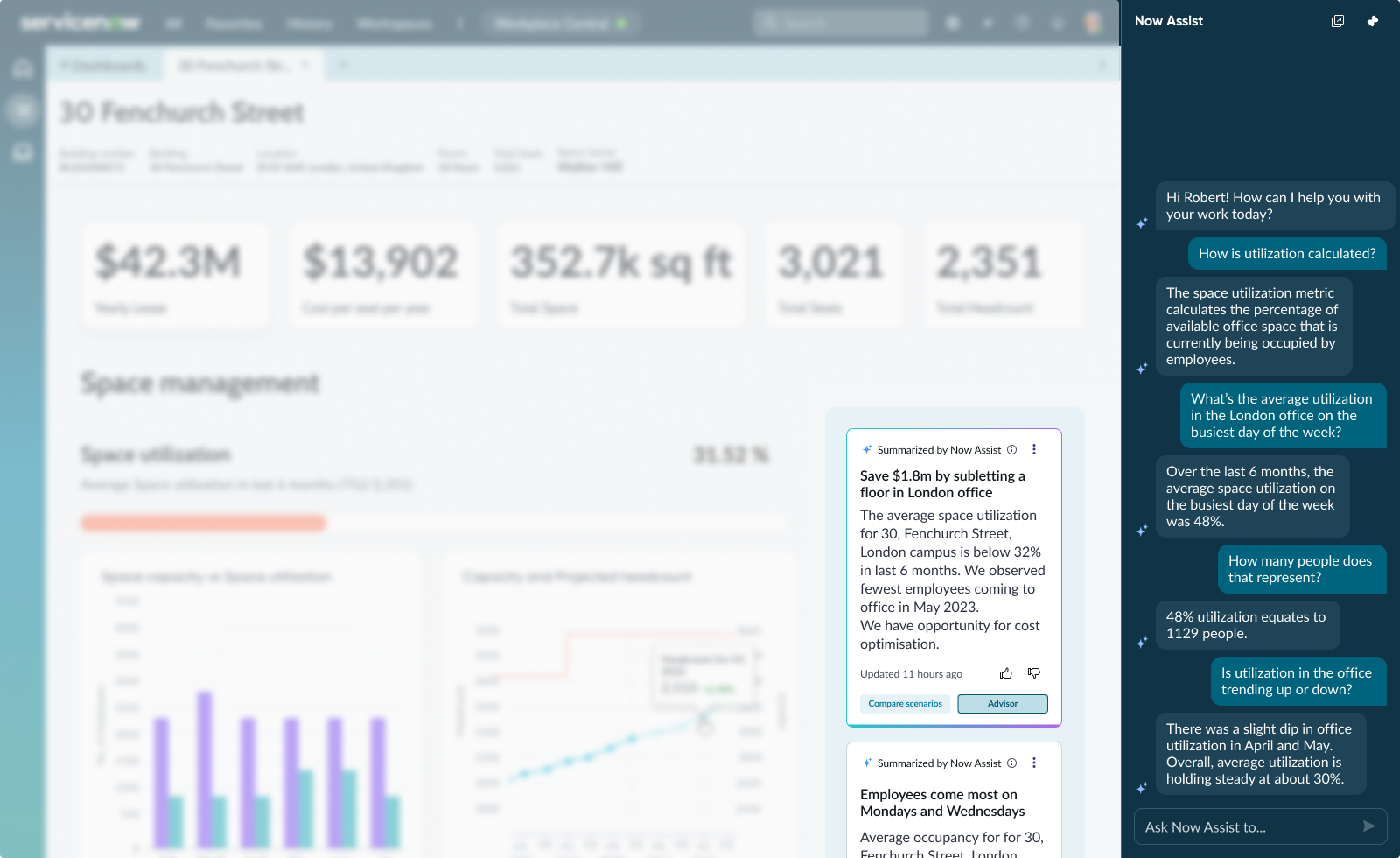 Workplace managers can use Now Assist, our Gen AI tool, to ask any data or strategy-related questions.